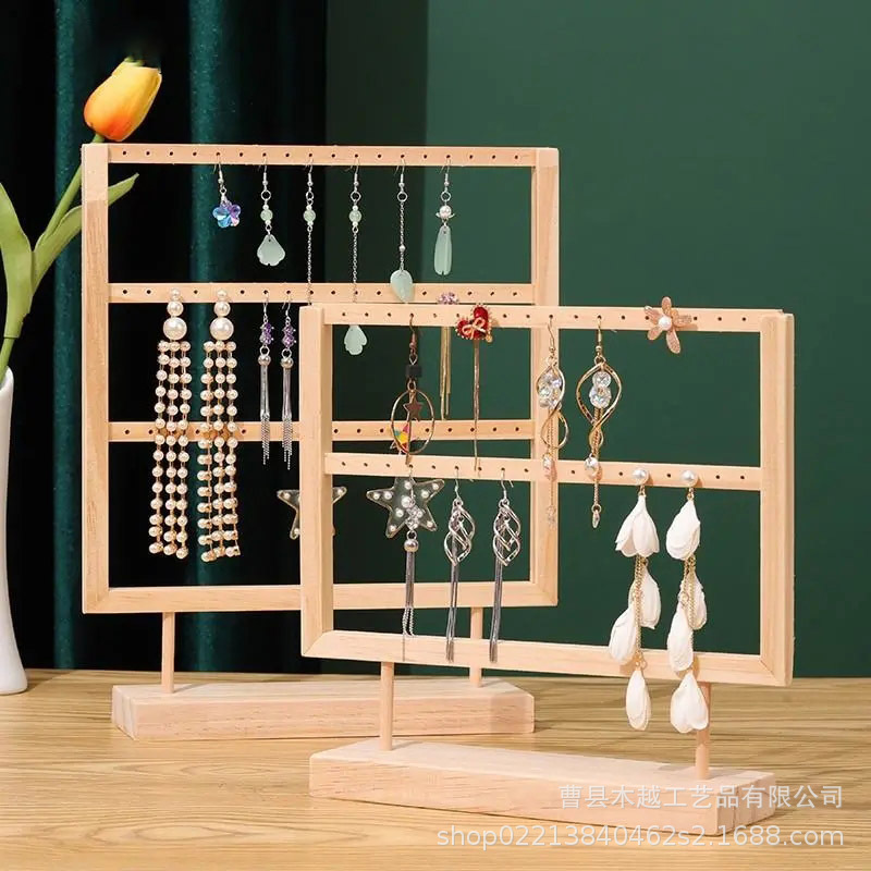 Wooden Earrings Hanging Rack Solid Wood Ear Studs Earrings Display Stand Counter Jewelry Display Rack Shooting Props