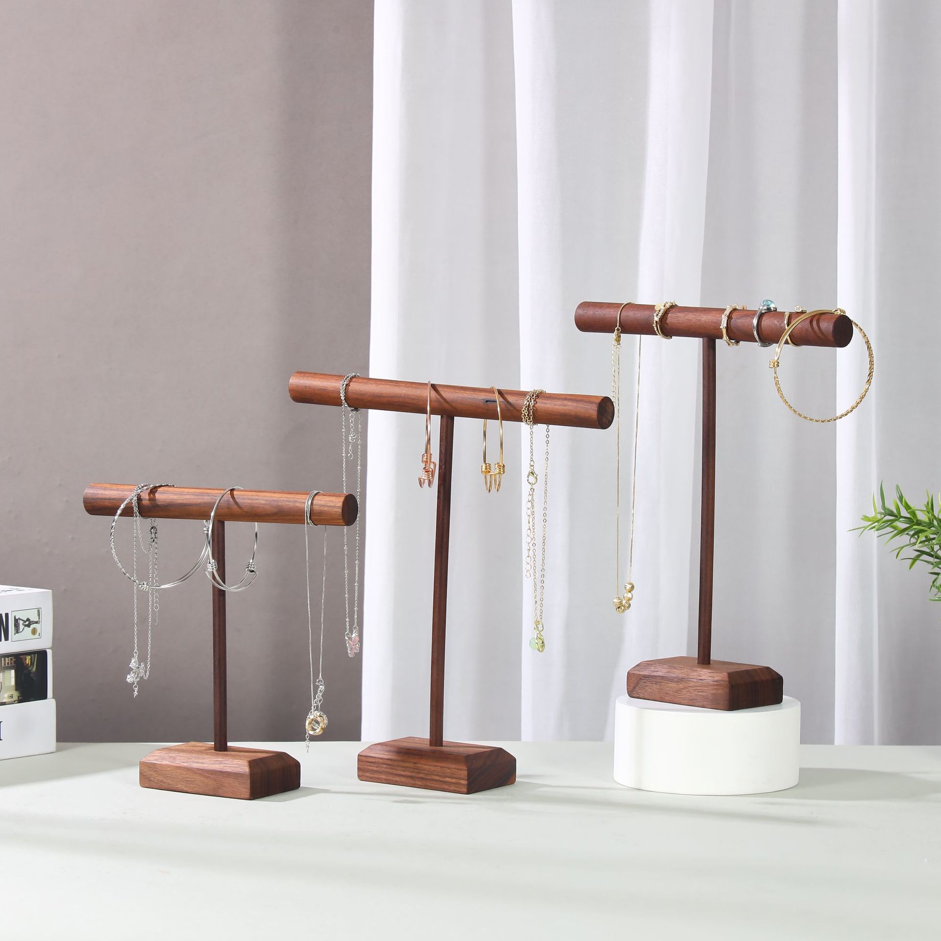 Jewelry Display Rack Walnut Vintage Bracelet Rack Counter Necklace Hanging Bracelet Display Storage Rack Props Ornaments