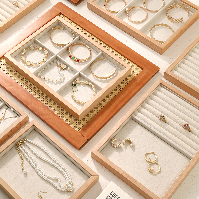 Solid wood jewelry tray storage wood linen ring necklace bracelet jewelry display plate shooting props
