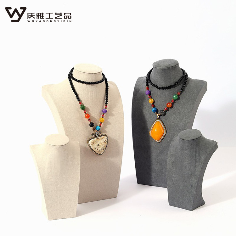 Suede H-shaped Window Model Display Necklace Rack Dark Grey Beige Necklace Display Prop Rack