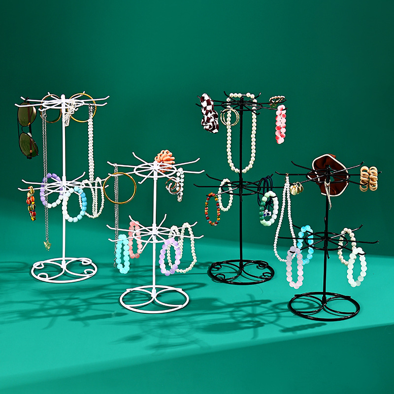 Iron Double-Layer Rotatable Jewelry Rack Multi-Functional Necklace Bracelet Storage Rack Desktop Small Items Storage Rack Cross-Border