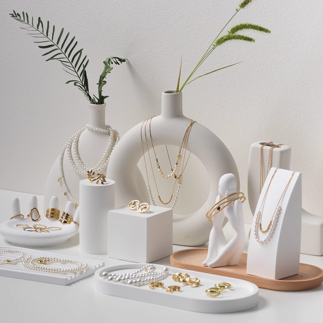 Jewelry Display Stand Creative White Geometric Plaster Ring Earrings Necklace Display Storage Tray Photo Props