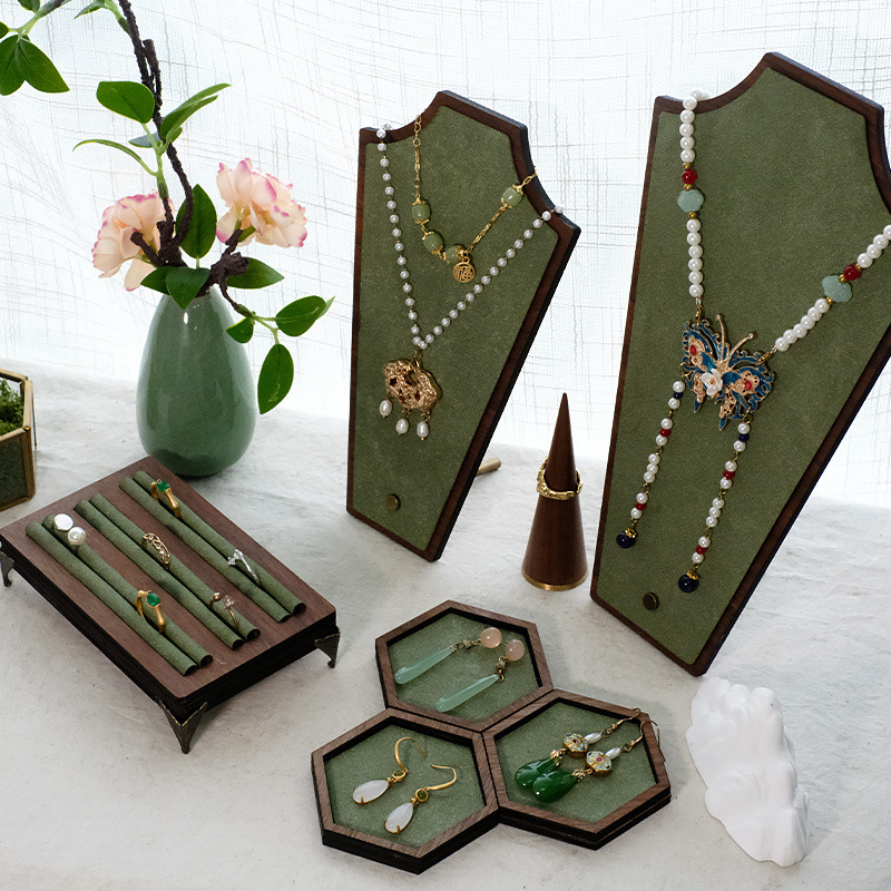 ☆ Jewelry Display Rack Light Luxury Retro Green Suede Necklace Pendant Jewelry Storage Rack Creative
