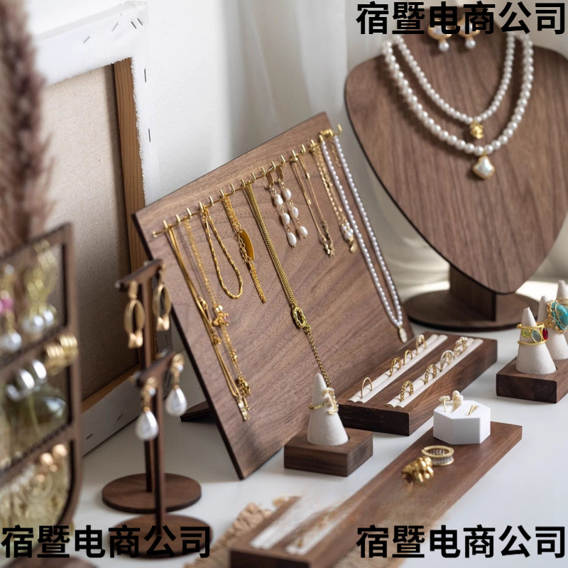 Cross-border Hot Walnut Ring Rack Earrings Ring Storage Rack Jewelry Display Rack Jewelry Shooting Props