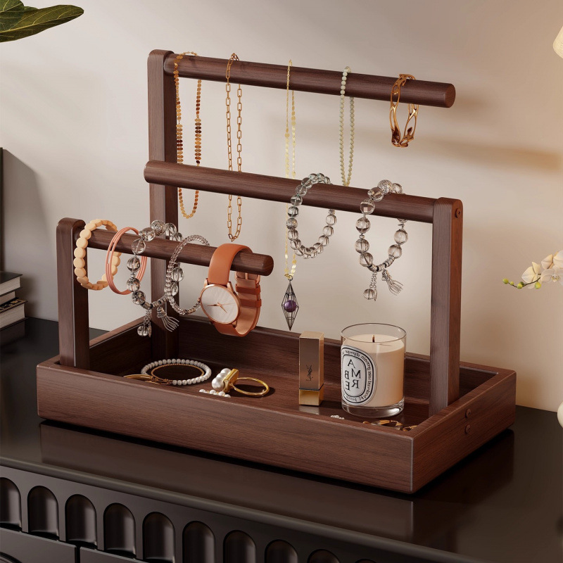 Black Walnut Jewelry Display Rack Hanging Jewelry Earrings Necklace Rack Large Capacity Storage Stall Jewelry Display Rack