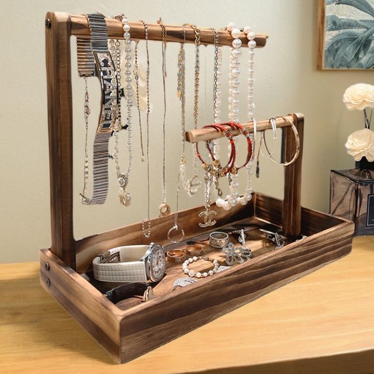 Walnut Jewelry Display Stand Bracelet Necklace Photo Frame Hanger Bracelet Earrings Jewelry Display Jewelry Ring Tray