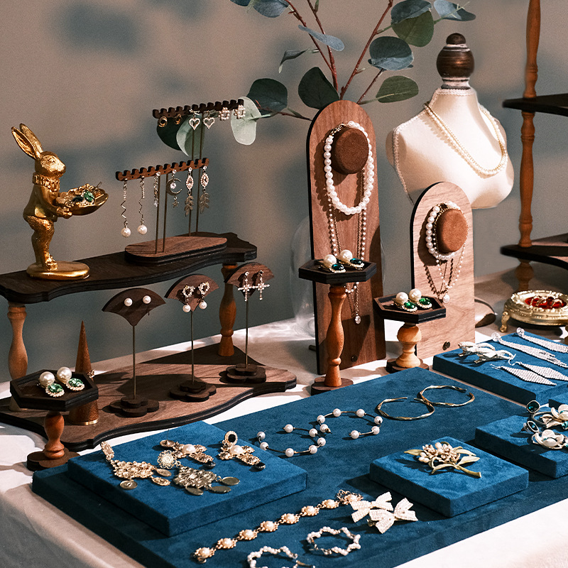 Retro three-layer jewelry display stand flannel ring tray earrings necklace shelf jewelry display shooting props