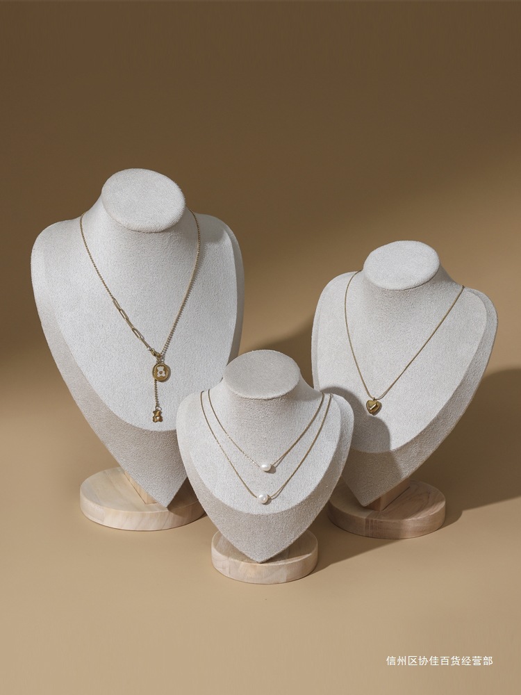 Wooden Velvet Necklace Jewelry Counter Store Display Stand Neck Model Head Pendant Jewelry Stand Model Neck Props