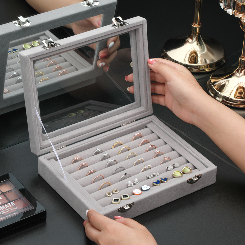 Ring Box Flannel Jewelry Storage Box Earrings Necklace Jewelry Box Large Capacity Dust-proof Jewelry Display Box with Lid