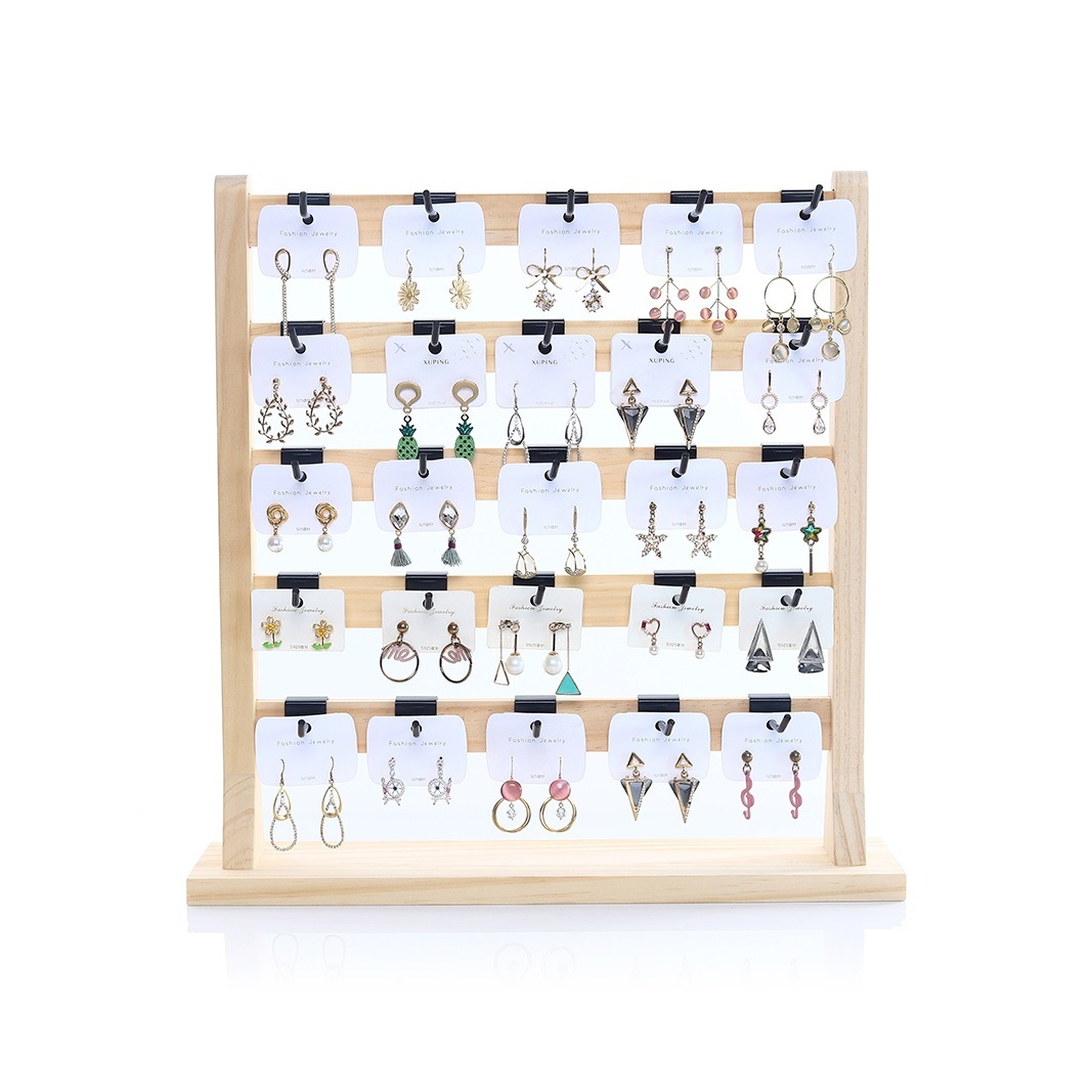 Solid Wood Iron Hook Hanging Earring Rack Storage Earring Cardboard Rack Earrings Jewelry Rack Stall Props Jewelry Display Rack