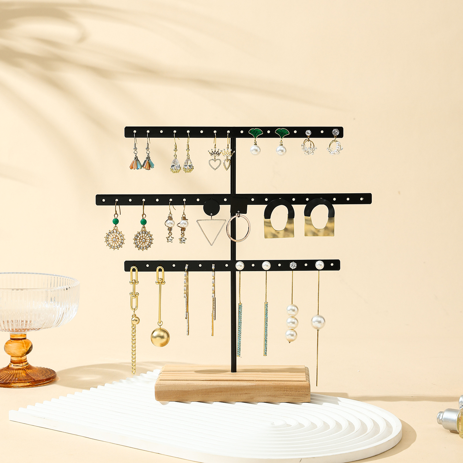 Wrought Iron Earring Rack Storage Earrings Ear Clip Hanger Home Jewelry Display Rack Jewelry Shelf Display Props Solid Wood