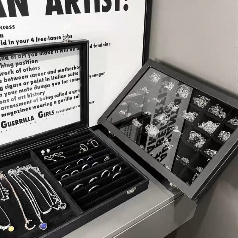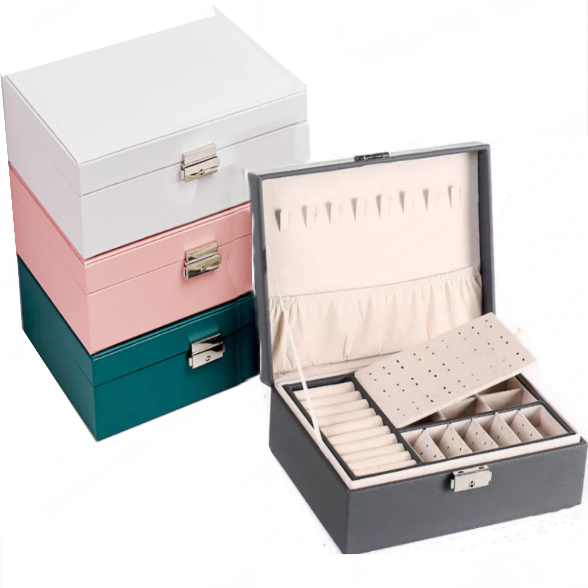 Wholesale new double-layer jewelry box with lock storage box earrings box jewelry earrings jewelry storage box large capacity PU