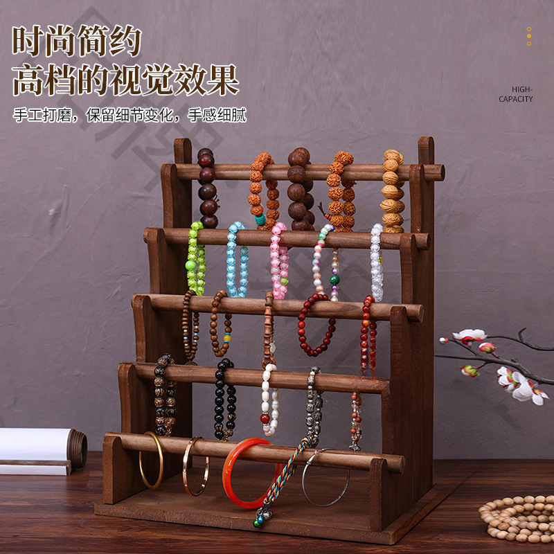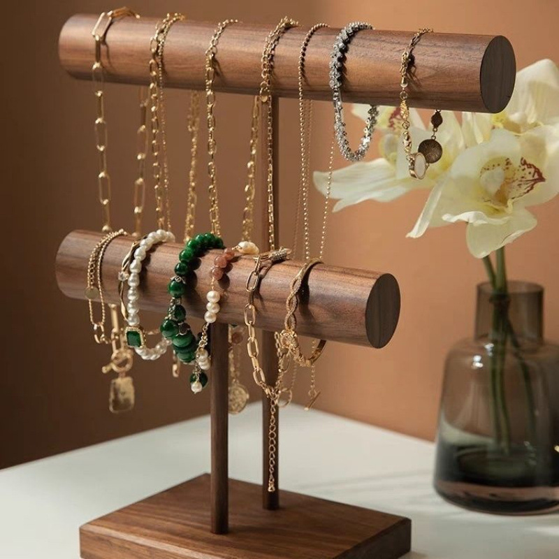 Creative Retro Shopping Mall Counter Jewelry Display Props Bracelet Rack Light Luxury Walnut Necklace Rack Double-Layer Watch Rack