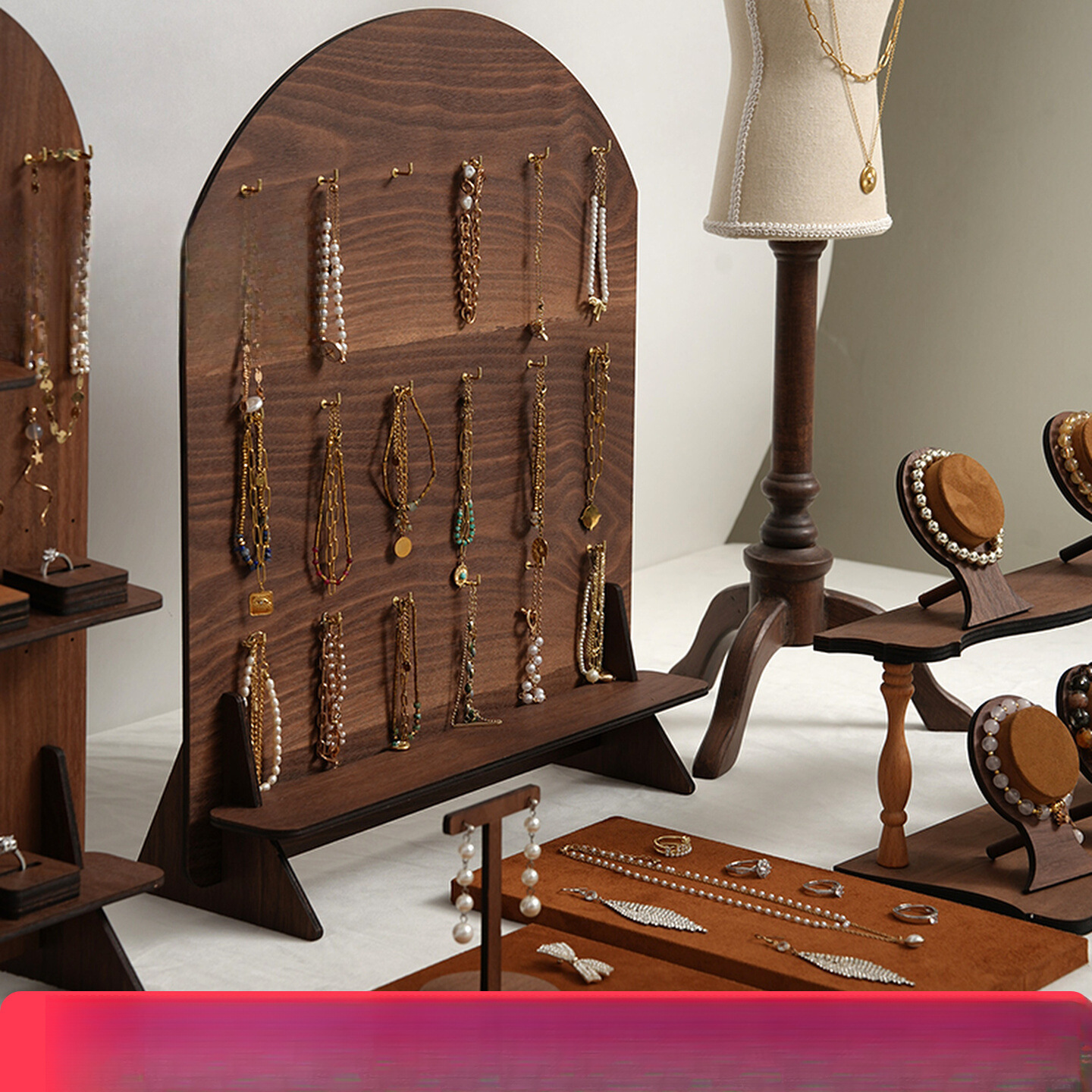 Jewelry Display Rack Walnut Perforated Board Storage Rack Bracelet Brand Earring Rack Jewelry Display Photography Props and Decorations
