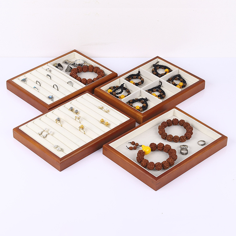 Solid Wood Jewelry Box Household Ring Storage Tray Earring Rack Bracelet Watch Pallet Stall Tray Jewelry Display Rack