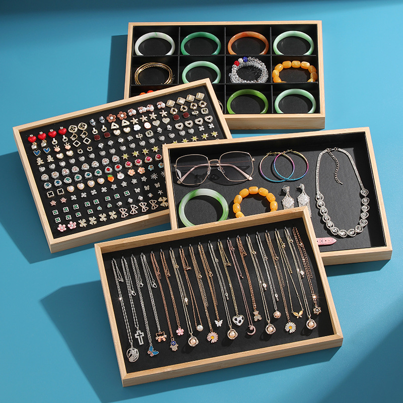 Bamboo wood jewelry plate black jewelry tray ring stud earrings bracelet necklace watch jewelry storage display plate