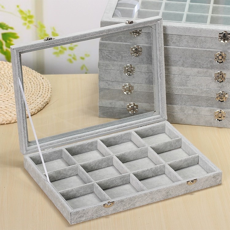 Ice Fleece Jewelry Box High-end Jewelry Display Plate Ring Necklace Earrings Bracelet Earrings Storage Box with Lid