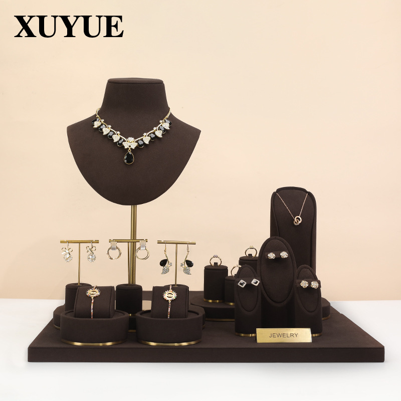 Xuyue Light Luxury Jewelry Display Props Brown Microfiber High-end Window Counter Jewelry Display Ring Earrings Display
