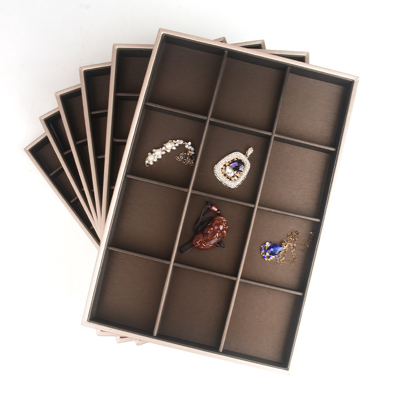 Puleather brushed gold inner brown jewelry goods display tray ring pendant bracelet pendant bracelet display plate
