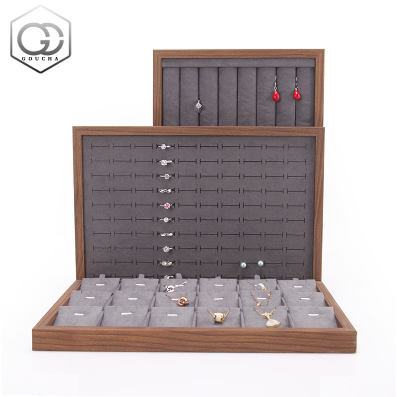 Velvet Jewelry Tray Walnut Dark Gray Ring Necklace Earrings Storage Display Box Bracelet Bracelet Jewelry Viewing Tray