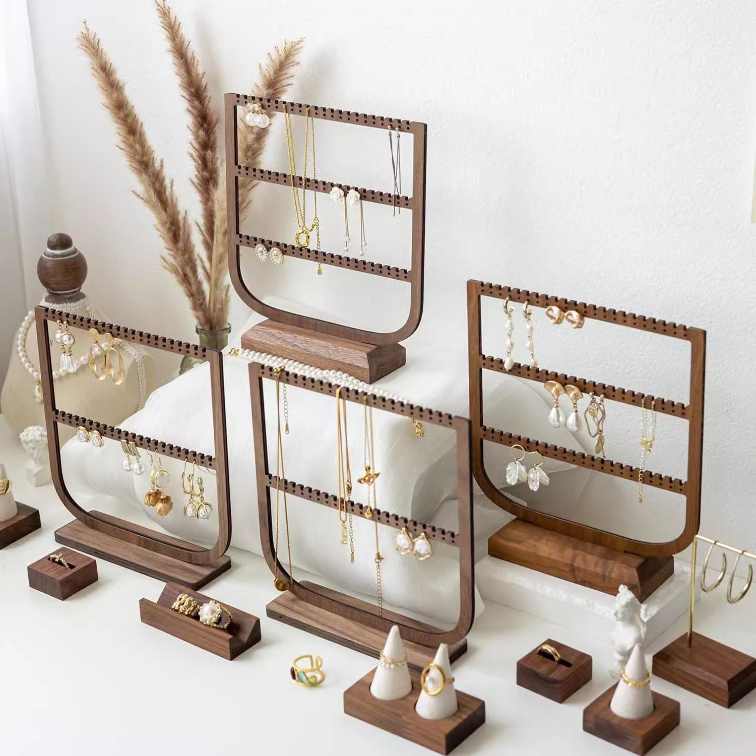 Walnut Jewelry Display Stand Geometric Jewelry Earrings Earrings Bracelet Jewelry Wooden Mat Live Stall Display Props
