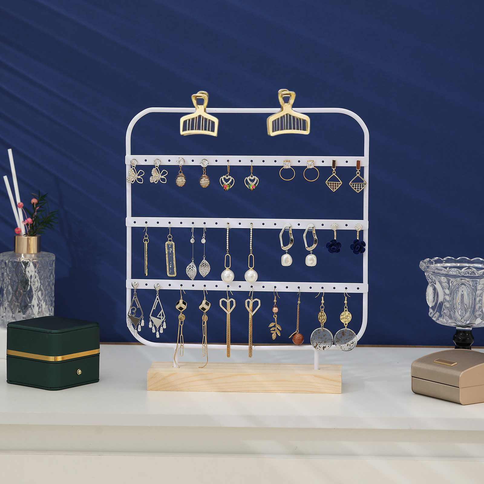 Solid Wood Iron Earring Rack Storage Jewelry Rack Hanging Earrings Cardboard Earring Rack Bracelet Jewelry Display Rack Props