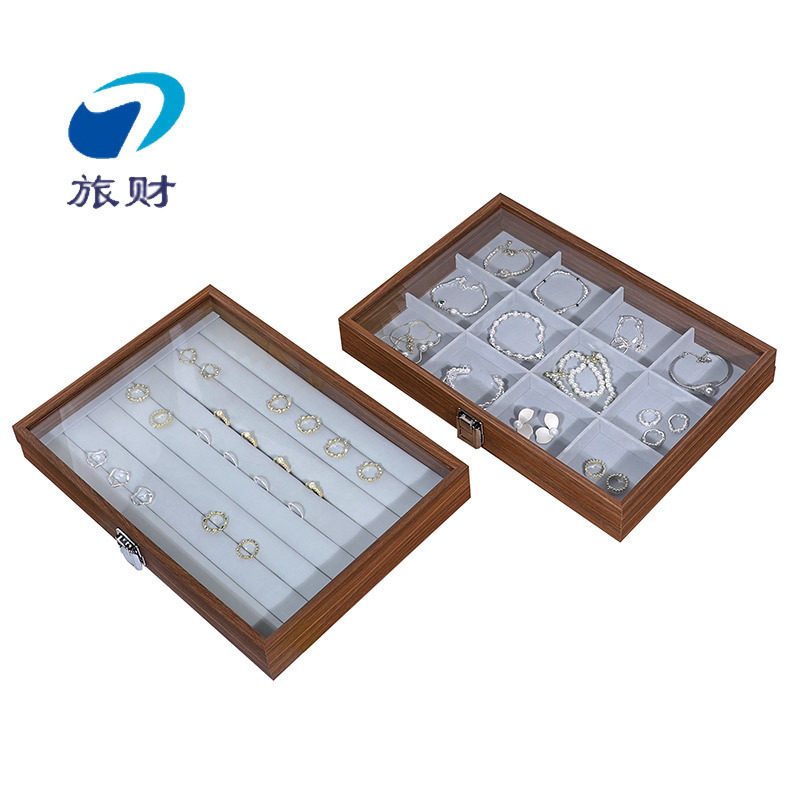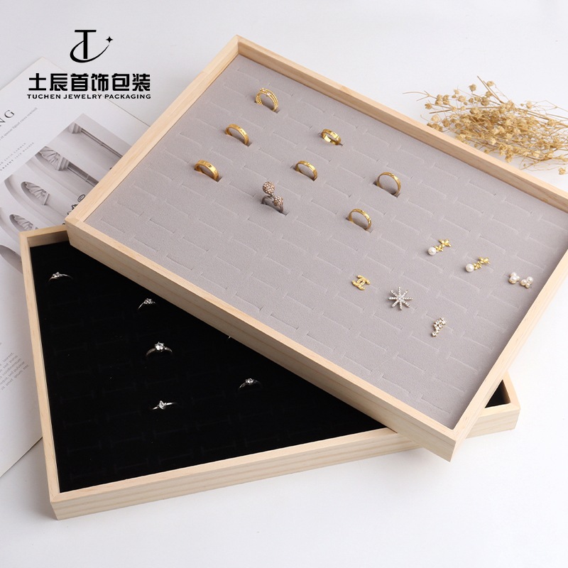 Jewelry Display Tray, Wooden Hundred-Ring Storage Tray, Lidless Sponge Counter Display Props