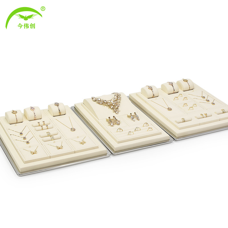 Jewelry Display Stand Beige Microfiber Jewelry Tray Metal Frame Necklace Ring Bracelet Display Tray