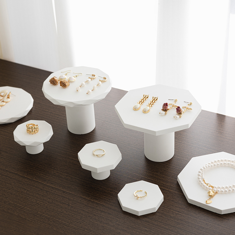 Gypsum round jewelry display stand high leg tray table decoration earrings ring necklace tray display props