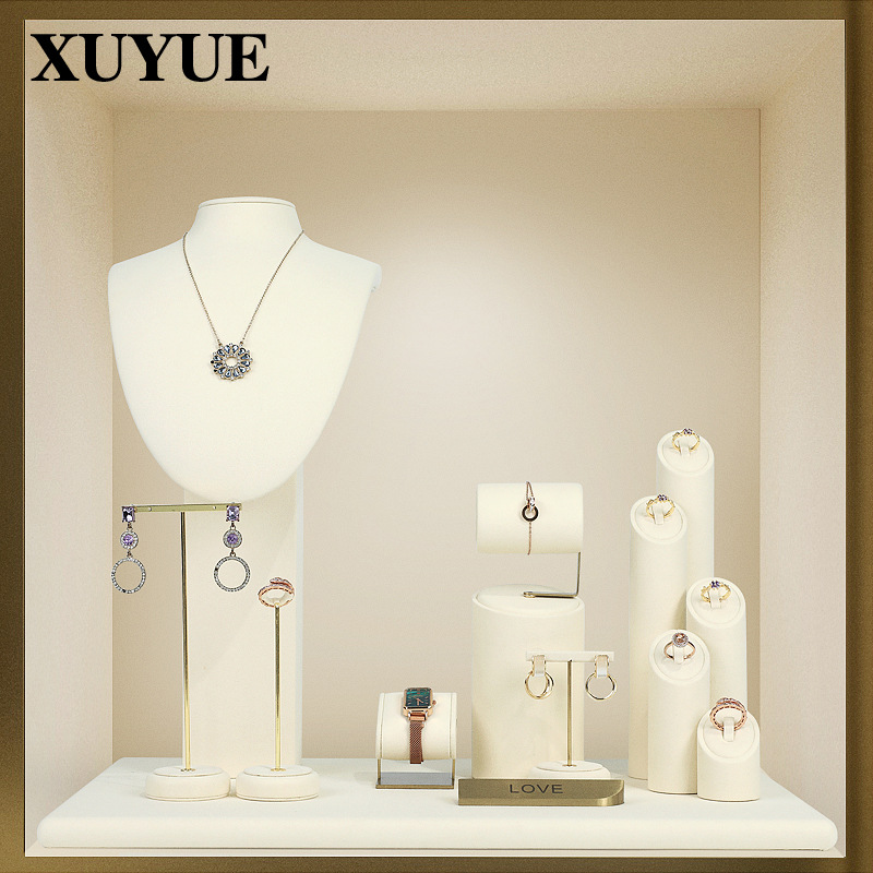 Xuyue jewelry display props beige microfiber window jewelry display props earrings necklace bracelet jewelry display