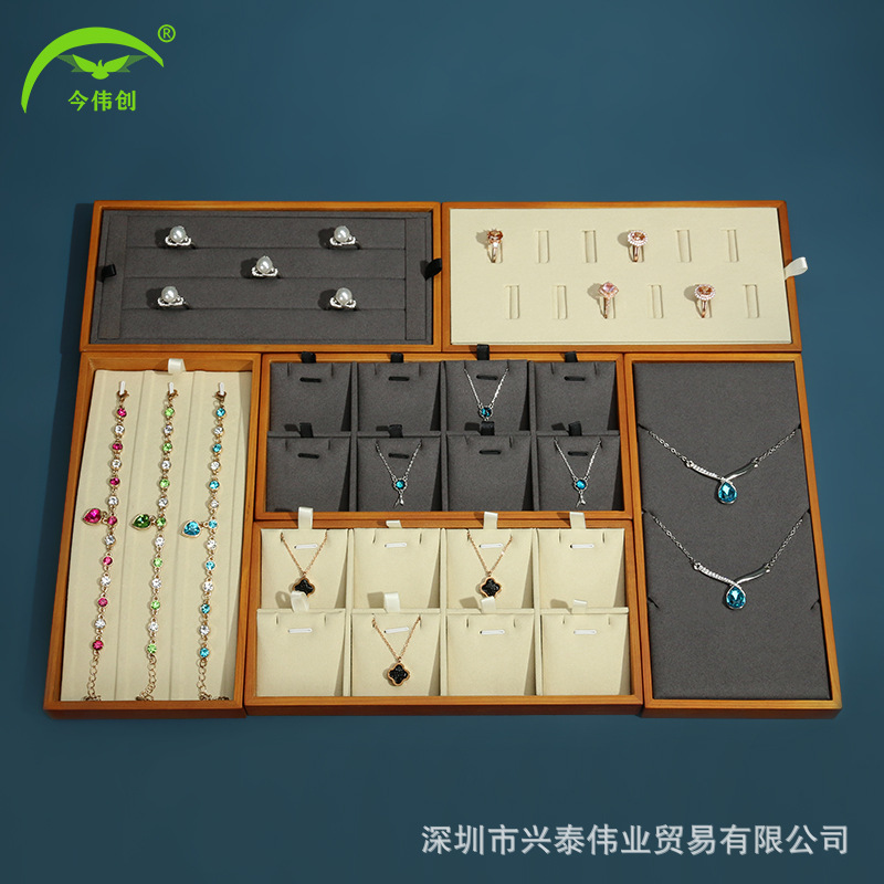 New Solid Wood Microfiber Jewelry Display Tray Necklace Ring Bracelet Jewelry Display Tray Jewelry Store Display Placement
