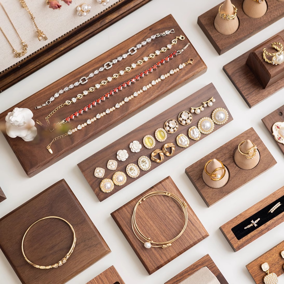Geometric Jewelry Display Mat Bracelet Earrings Ring Walnut Shelf Jewelry Counter Display Jewelry Photo Props
