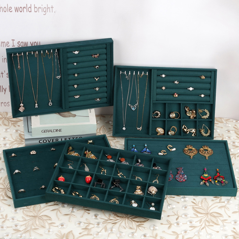 Wooden flannel jewelry plate bracelet necklace jewelry storage box earrings ring bracelet display tray