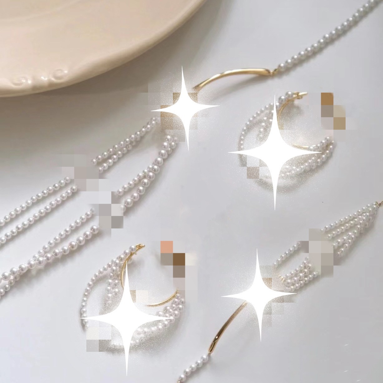 Tableware necklace fork earrings pasta necklace cream style fork bracelet pasta imitation pearl Maillard suit