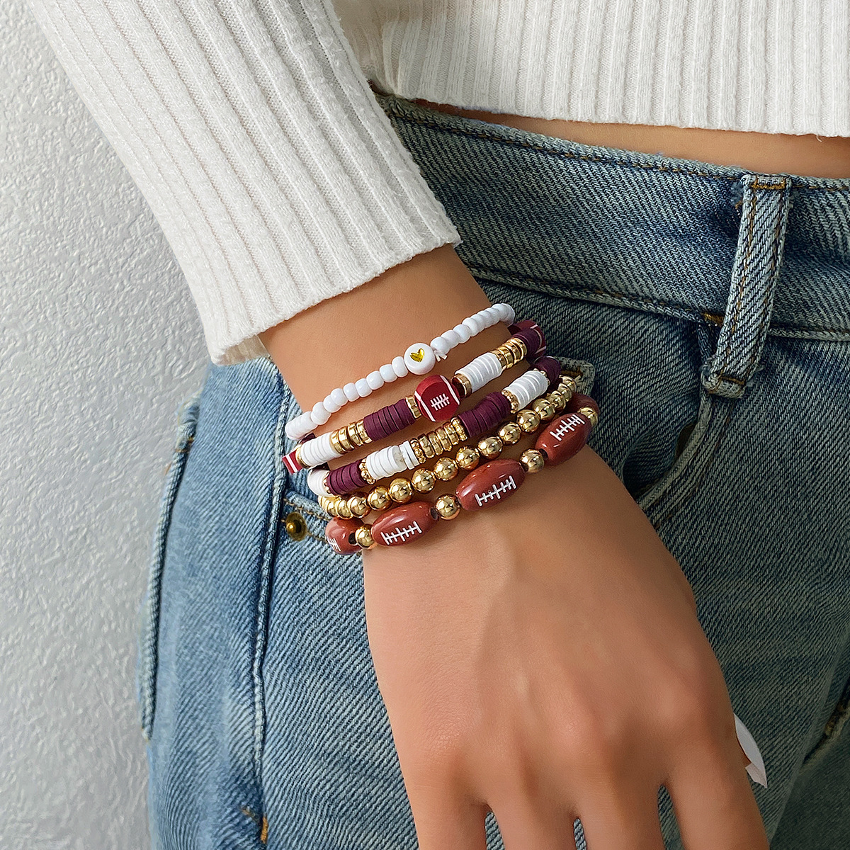 European and American American Super Bowl Rugby Bracelet Set Game Day Soft Clay Bracelet for Women Multi-Layered Bracelets for Men