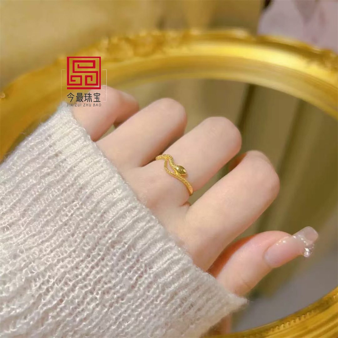 Ancient Sand Gold Snake Bracelet Ring suit Light Luxury All-match Copper Gold Plated Snake Bracelet Adjustable Plate Snake Ring