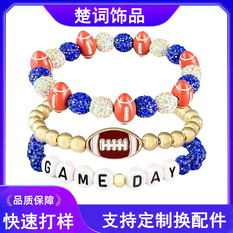 Cross-Border European and American Super Bowl Football Game Day Disco Diamond Ball Men's and Women's Bracelets Sports Style Gift Bracelets