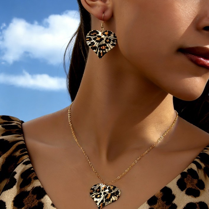 European and American Cross-Border Trendy New Geometric Circle Disc Print Leopard Print Women's Exaggerated Stylish Necklace and Earrings Set