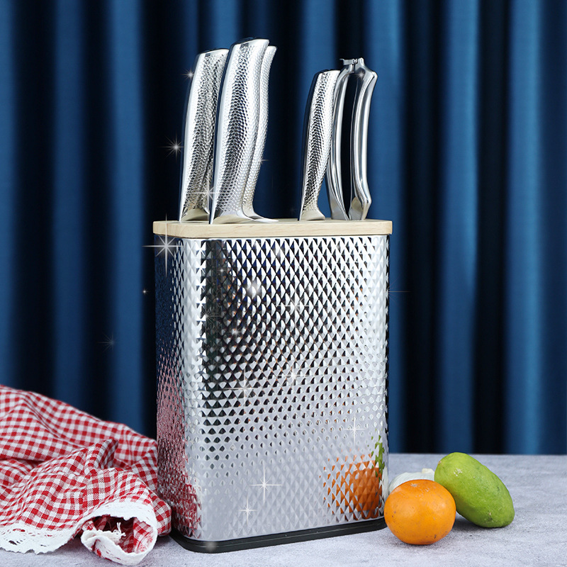 Langma Knife Set Six-piece Set Multi-functional Slicing Household High-end Knife Holder Kitchen with Diamond Pattern Durable