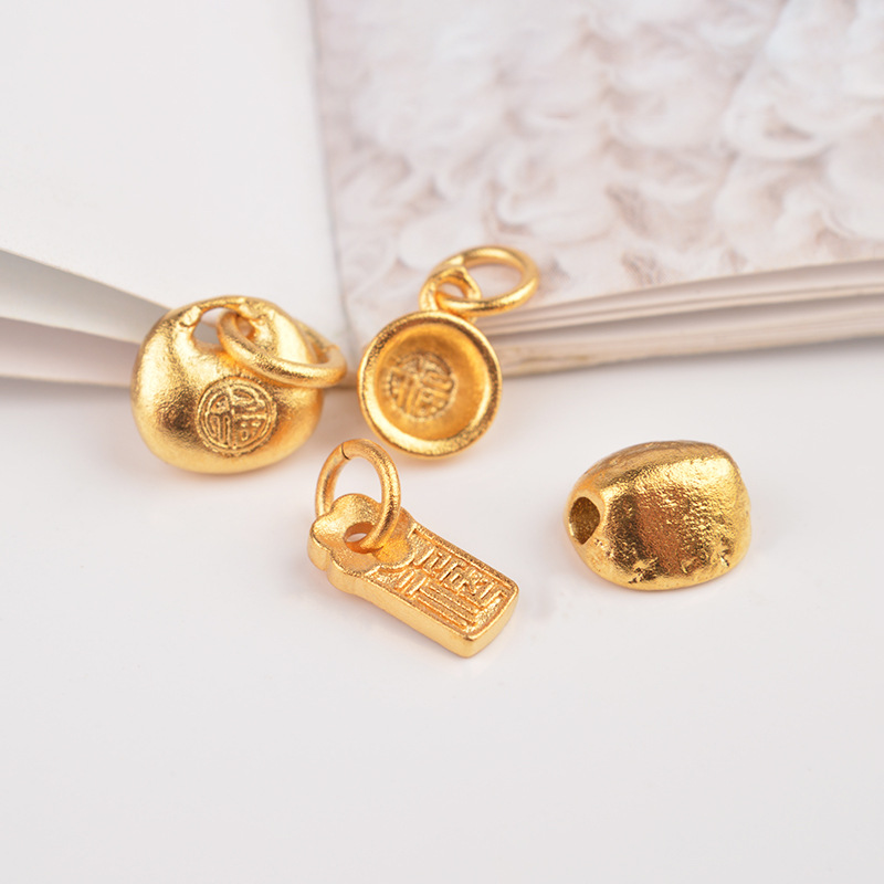 Color-Preserving Sand Gold Pendant with the Character "Fu" and "Ji" in a Lucky Bag, Lock, Bowl, Lotus Accessories, Auspicious and Wishful DIY Tag Handmade