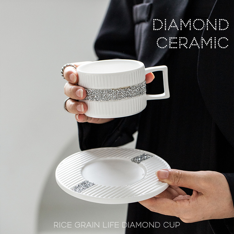 Cross-border hot selling new Nordic ins coffee cup and saucer suit ceramic cup office home diamond coffee cup