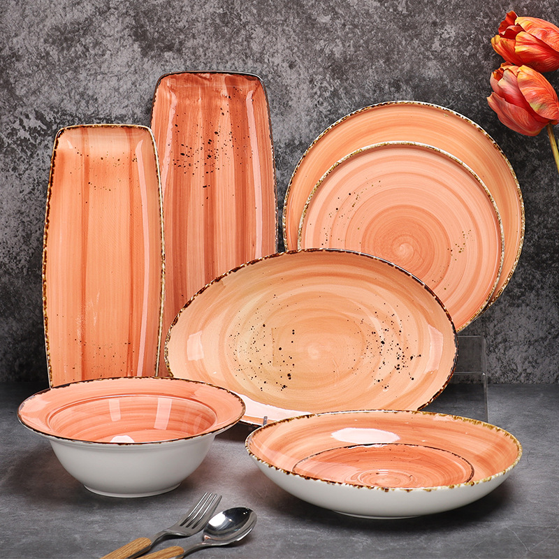 Hand-painted gem red splash ink bowl ceramic tableware plate bowl hotel restaurant western food plate soup bowl factory direct sales