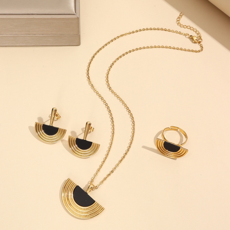 2025 Cross-Border Middle East New French Semi-Circular Pattern Design Earrings and Necklace Set Classical Accessible Luxury Jewelry