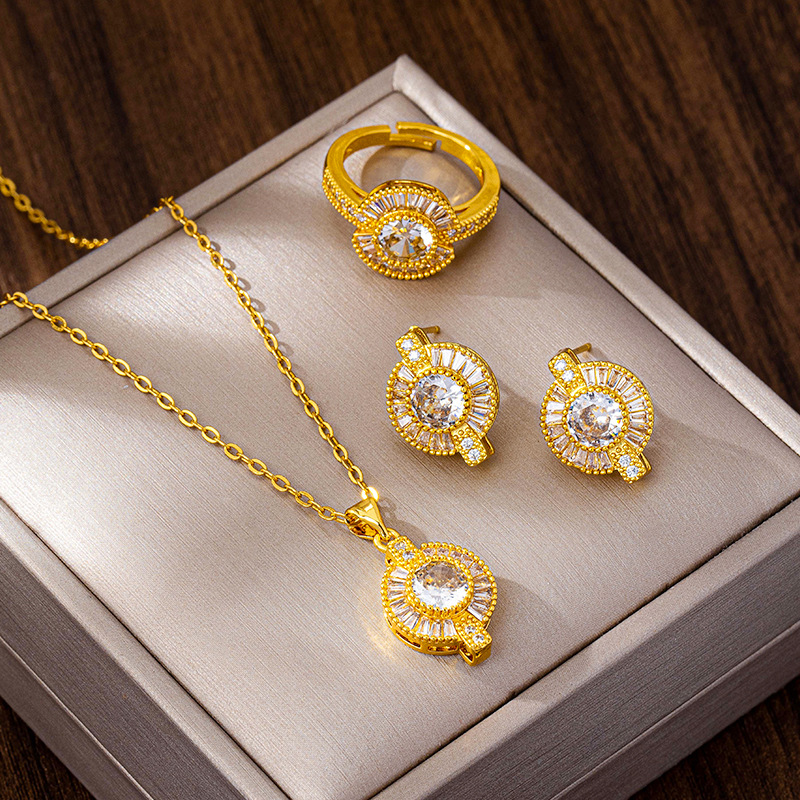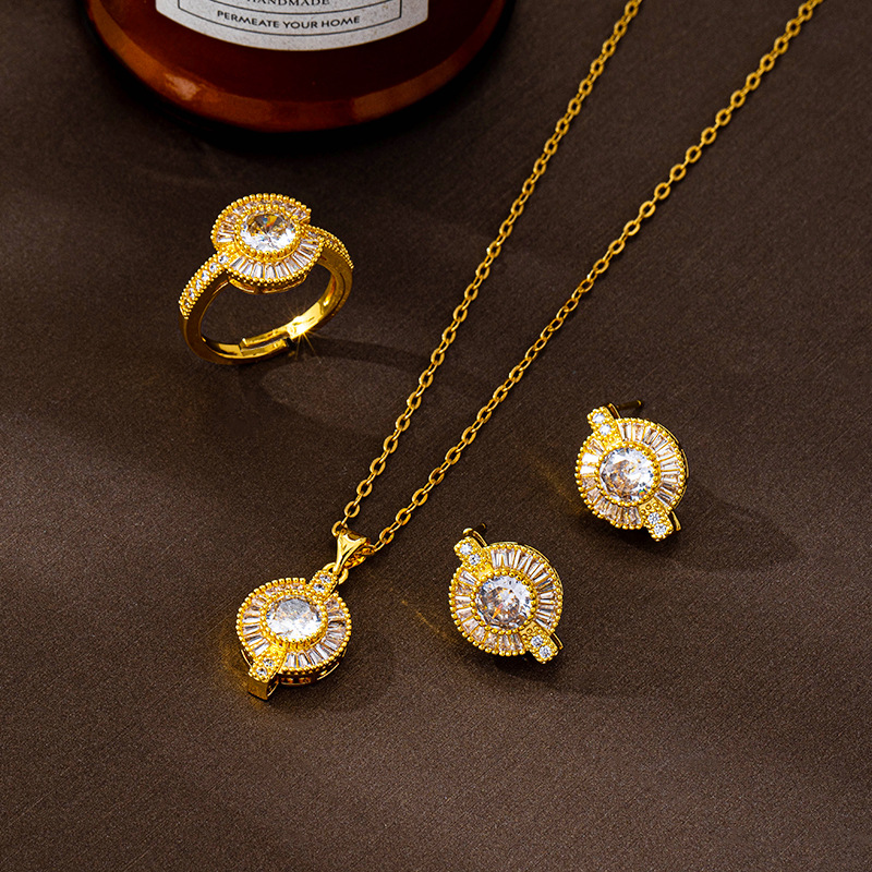 Exquisitely Designed Diamond Disc Necklace for Women, Vietnamese Sand Gold Round Open Ring, Earrings Set, Cross-Border Jewelry