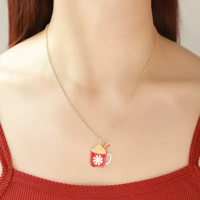 Christmas Snowflake Oil Drop Pendant Combination Set for Women European and American Cross-Border Cup Necklace Cup Base Oil Earrings