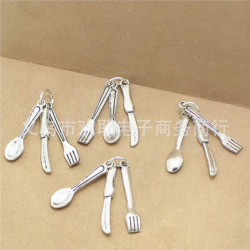 Simulation kitchenware charm DIY alloy jewelry accessories jewelry accessories knife fork spoon kit pendant