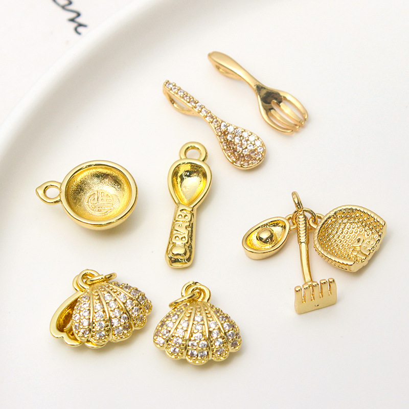 Copper gold-plated ingot dustpan fork spoon bowl lucky treasure pendant pendant diy jewelry keychain accessories