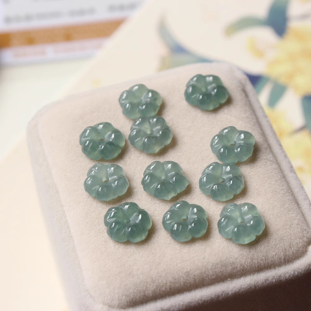 Natural Jade A Goods Ice Blue Water Jade Bowl Flower Petal DIY Bracelet Necklace Pendant Accessories Tail Buckle
