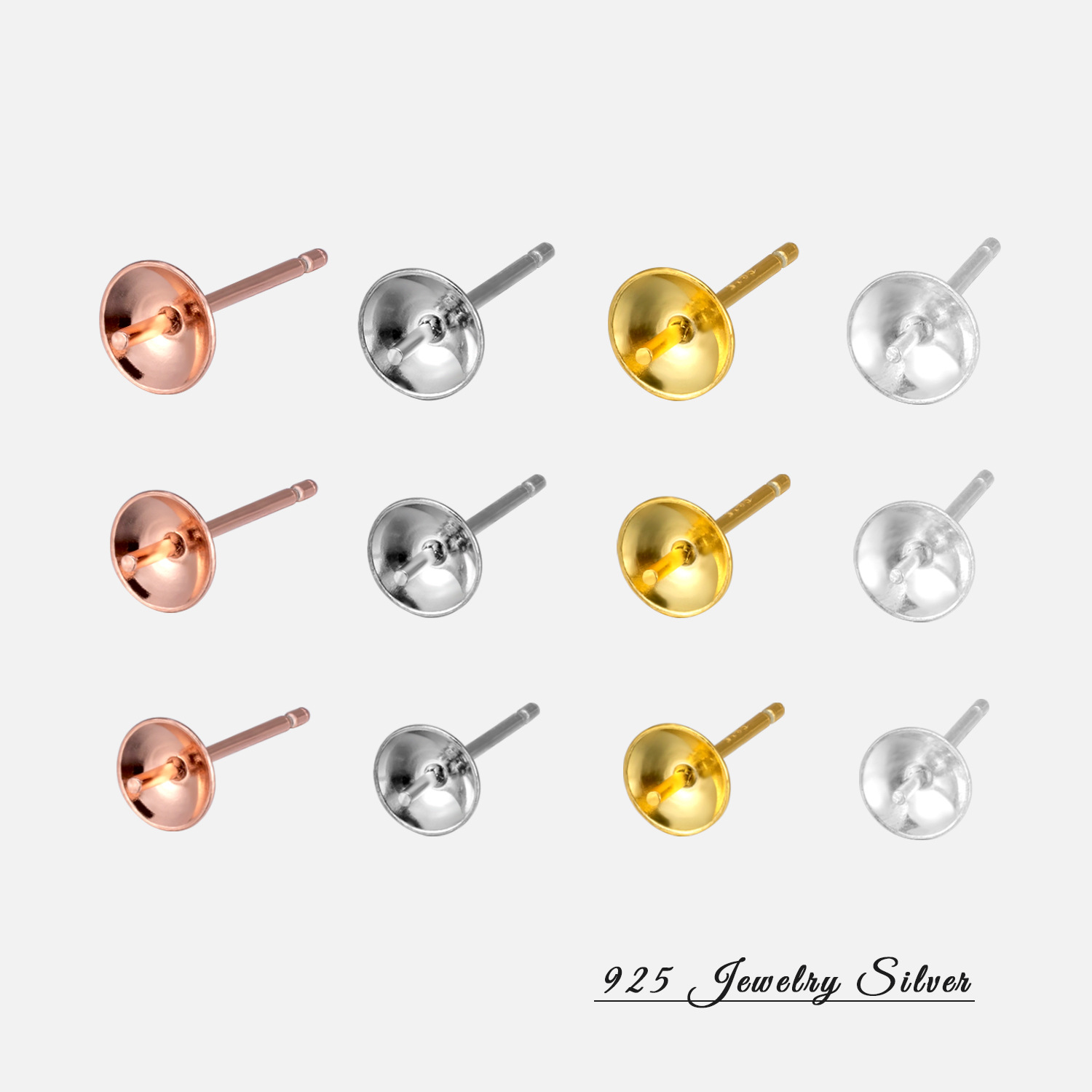 S925 Sterling Silver Simple Pearl Bowl Cup Holder Earrings Empty Holder Handmade DIY Jewelry Accessories Silver Stud Earrings Wholesale