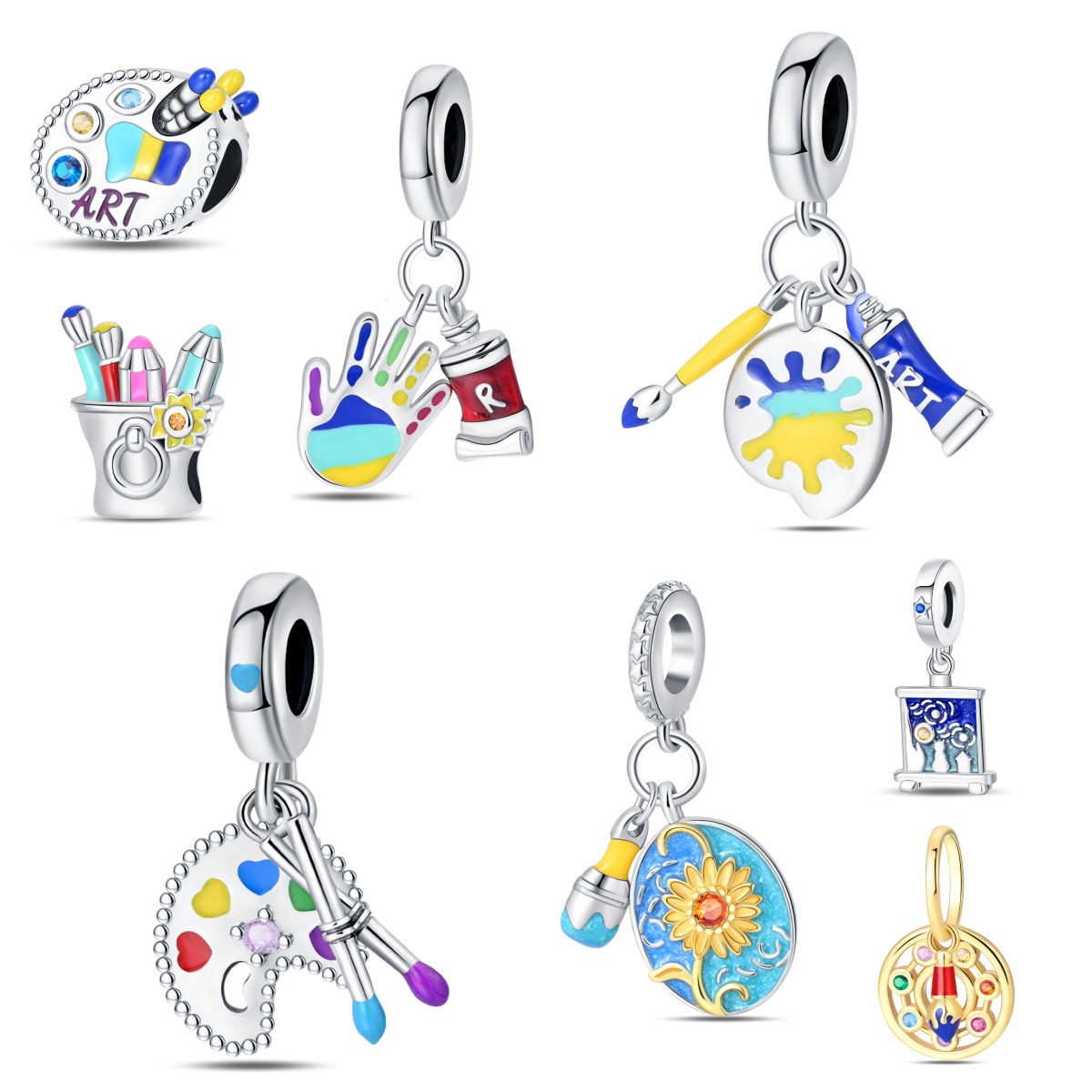 Pan's Original Design Palette Oil Painting Pendant Copper Plated with 925 Silver DIY Jewelry Accessories Bracelet